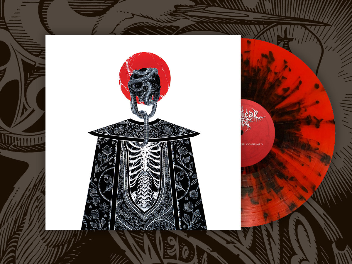 Rapturous Flesh Consumed was recorded live in the studio by Augustine Ortiz, who also meticulously mixed the album. Mastered at Cauliflower Audio in Cleveland, OH. The album’s artwork is by Zac Scheinbaum and was commissioned specifically to fit the album’s themes of ghastly religious persecution.