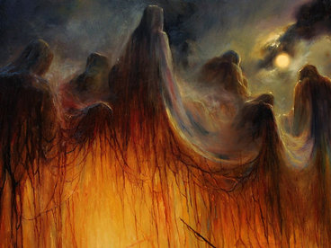 We are the void, the listless hollow. Hot, empty, pitted stones. Dancing in the song of Lilith's revenge, we are her sweetless perpetual mourn. We are the blood down the thighs of that sacrificial mother, her mistaken purged birth. A consecration of rotten semen and late desires carved in stone fog. We trace our fate in the lines of a dead man's face through the eye of his executioner. And our magic is great; for just as he, we see truth in our mechanisms as a child does in his imaginary playmate. This life is comedy, laughing, with his bone-white fingers growing tired around our necks. Giving us his sweet, plagued breath, ever reminding us of our joyless folly: We shall live as fiending witches and die by our devices greater as kings, rotting in our post-mortem excrement. Sinking into the earth splayed in the decadence of the evolving colors of our dead flesh. Our beautiful ode to squalor.